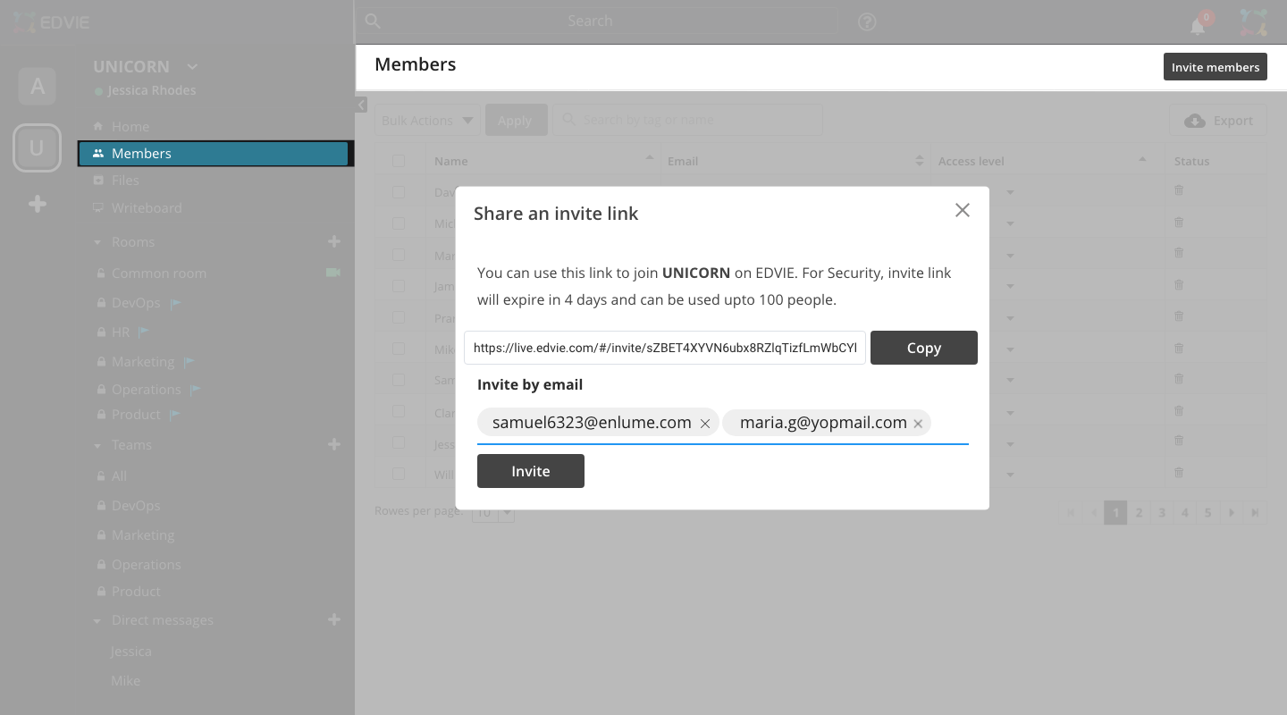 Invite your fellow team members and colleagues into your workspace by copying the invite link. You can also send them an invitation by email