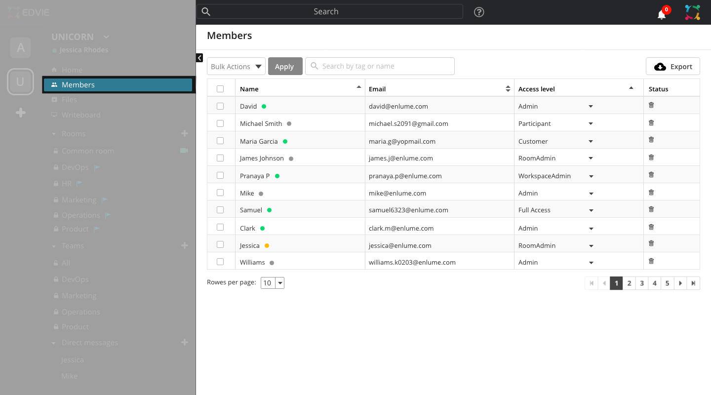 Look up your fellow colleagues and team members who are a part of this organization here! Click on the invite members button to invite more people into your organization. With Edvie, you can also send the invite link through an email. Change roles, add and delete members as per your organization requirements
