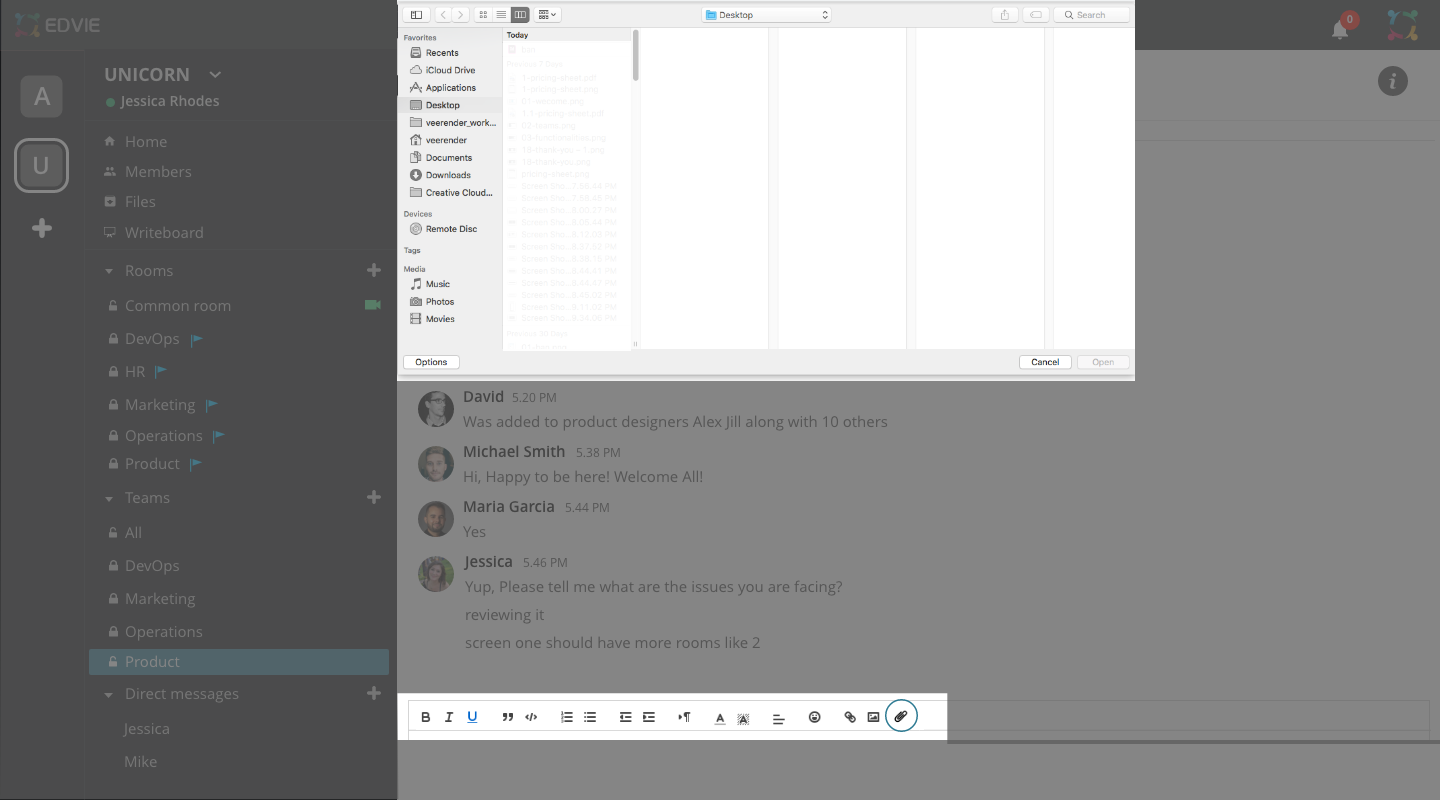 Start conversing with your fellow team members. Chat and share files and documents with just one click!
